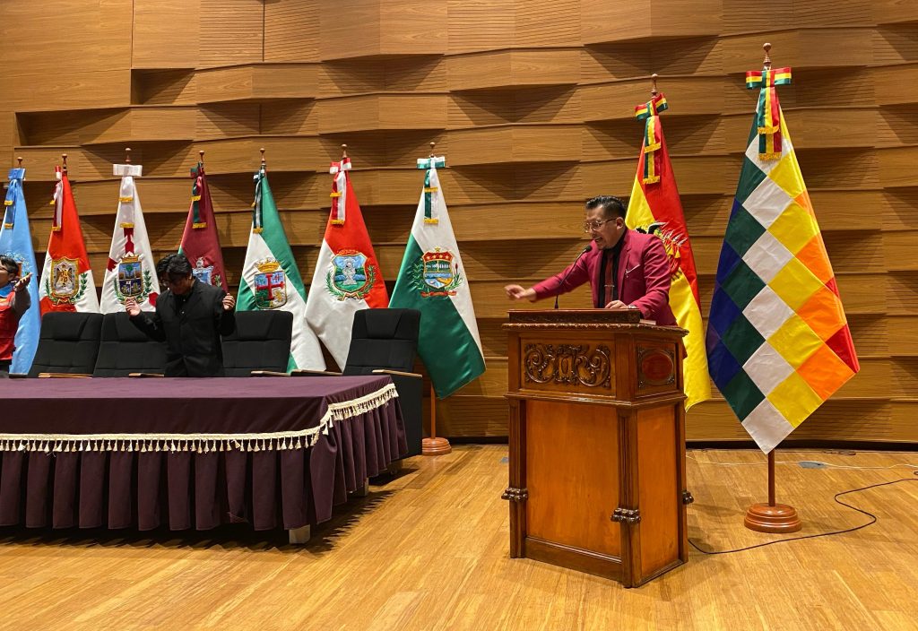 Al concluir el acto del lanzamiento de la @RevistaFuego, el evangelista Herberth Arias dirigió a todos los asistentes en el clamor por Bolivia y sus autoridades gubernamentales, en el Salón de Interpelaciones de la Asamblea Legislativa Plurinacional, misma que es el centro político de este país.